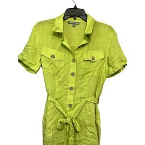 Good Luck Gem Romper Belted Button-Down with Front Pocket Neon Green Small NWOT