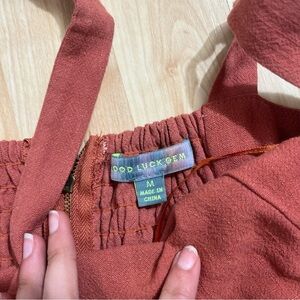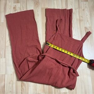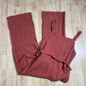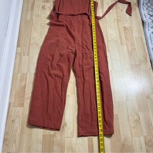 Good Luck Gem Size Medium Rust Red Sleeveless Waist Tie Wide Leg Crop Jumpsuit