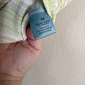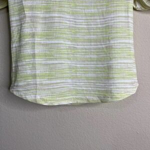 Good Luck Gem Striped Puff Sleeve Top Ribbed Knit Tee Chartreuse White M