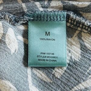 * Gray Blue background with ivory and tan tropical leaf print (multicolored)