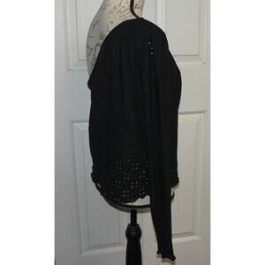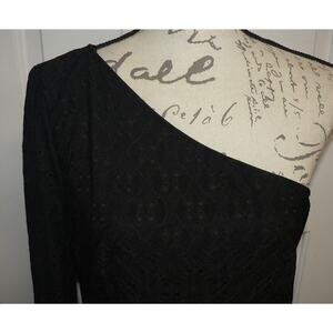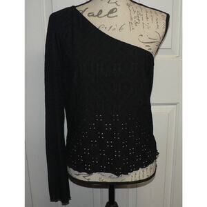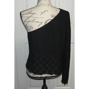 Good Luck Gem Women's Eyelet One Shoulder Top Blouse in Black XLarge