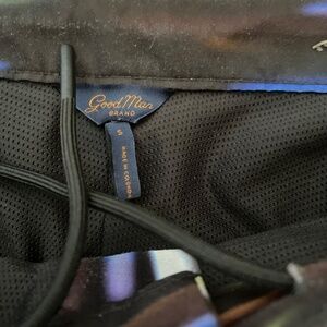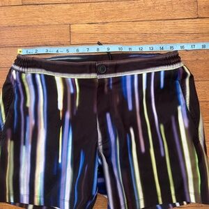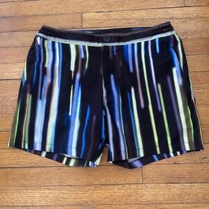 Good Man Brand "Flashing Lights" print swim trunk men's sz small striped