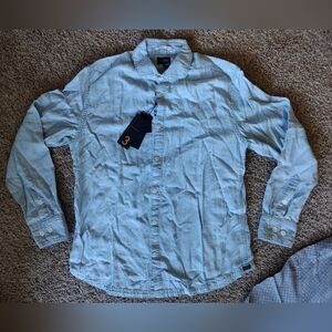Good Man Brand, both men's size mediums, measurements included in pictures. One Denim button down, and one casual button down shirt. One NWT and one NWOT, Perfect for casual or formal occasions. All questions welcome!