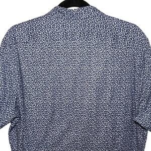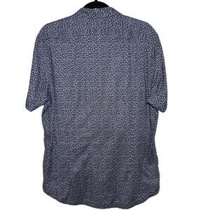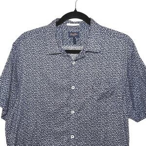 Good Man Brand On Point Short Sleeve Button Down Shirt size Large. Made from 100% Italian Cotton and cut in a length that looks good tucked or untucked. Blue with a micro floral pattern in white. Left chest pocket and point collar. Excellent condition. Measurements: length - 30 inches and Chest (underarm to underarm)- 21 inches