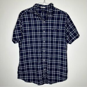 Good Man Brand Navy and White Striped Short Sleeve Button Down Shirt in Size XXL