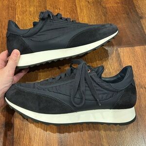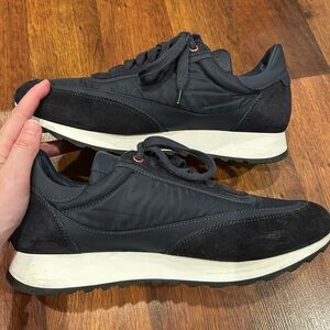 Great condition- no signs of wear. No size tag visible, but I have other shoes in the same brand and they measure as a men’s 9. Good Man Brand Triumph Trainers Navy Blue Mens 9 Suede. Very nice quality, hand crafted in Italy.