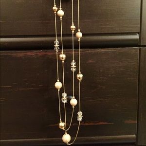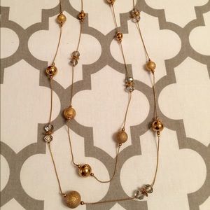 Beautiful multi- stand gold necklace with brad and crystal accents. Definitely catches the light and in great condition.