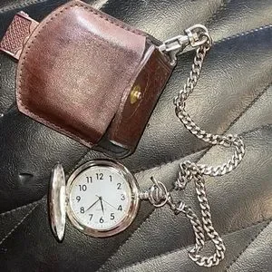 This is a good quality battery operated silver finish pocket watch that comes with the faux leather case and chain for that extra insurance that you might actually be able to not lose it for a long time