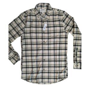 Good Threads Mens Beige Plaid Brushed Cotton Flannel Button Down Shirt