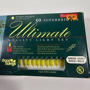 Good Tidings 50ct Yellow / Gold String Lights NEW Green Wire 23ft Christmas