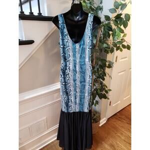 Good Time Long Maxi Dress Womens S Multi Snakeskin Print Scoop Neck Peplum Hem S