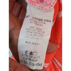Good Time Women's Orange White Round Neck Short Sleeve Knee Length Dress Size 2X.