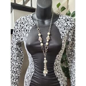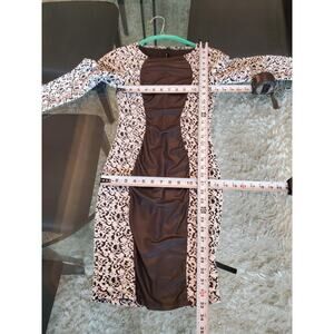 Good Time Women's White Black Rayon Round Neck Long Sleeve Knee Length Dress S.