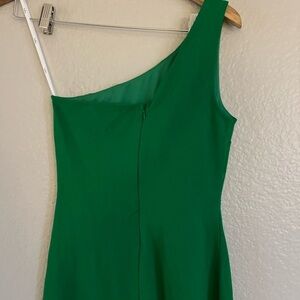Lulus Good Times Only Green One-Shoulder Maxi Dress! Medium-weight stretchy ponte knit shapes this sexy dress with a wide strap that flows into a one-shoulder neckline and a darted bodice. A high waist tops a figure-skimming maxi skirt with an asymmetrical slit at the front. Hidden back zipper.