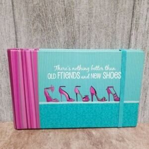 "Old Friends/New Shoes" is cardboard with elastic band to hold closed. Hold 40 4x6 photos.