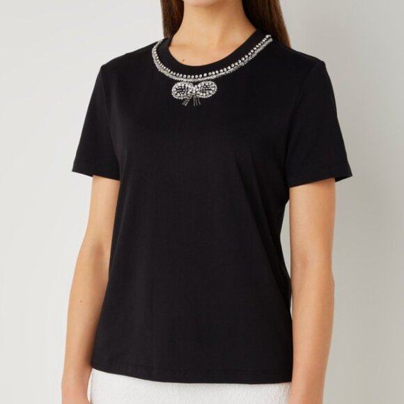 [Good Used Condition] Maje Embellished Rhinestone Bow TShirt // Maje Sz 2 (US M)