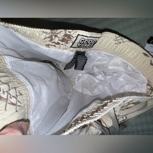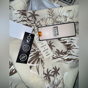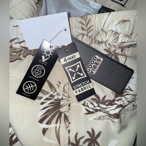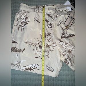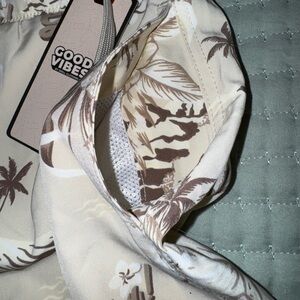 Good Vibes Beige/Brown 3 way stretch tropical swim Shorts. Size M. NWT