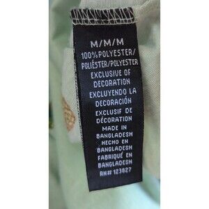 The product is a vintage Drill Clothing pineapple-themed t-shirt in size M. It features a round neck, short sleeves, and a casual sleeve type. The green shirt is adorned with pineapple accents, making it a fun and stylish choice for women. With a regular fit and slimming features, this basic tee is perfect for those looking to add a tropical touch to their wardrobe.