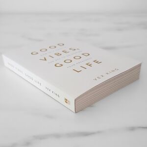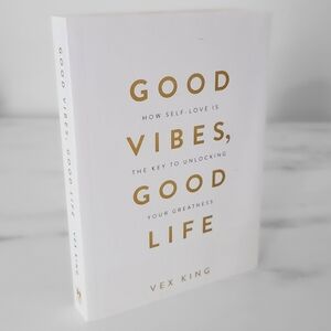 Inspirational book 'Good Vibes, Good Life' by Vex King. Features motivational insights.