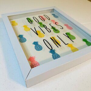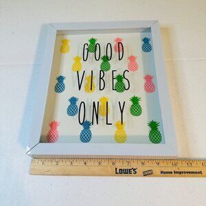"Good Vibes Only" Multi-color Pineapple Shadow Box Wall Art 10x12 White Frame