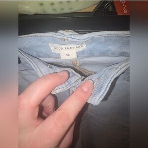 Topstitching brings structure to light-wash jeans finished with raw, jadded hems for lived-in appeal.