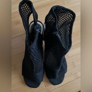 Black color. High heels sandals.