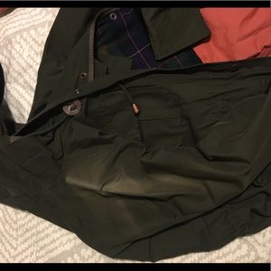 Good condition kasson jacket from Penfield in olive. Navy and orange plaid lining. Bought in 2014. Sun damage on the left shoulder