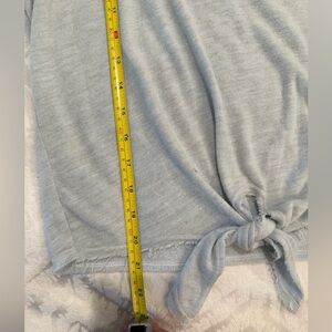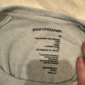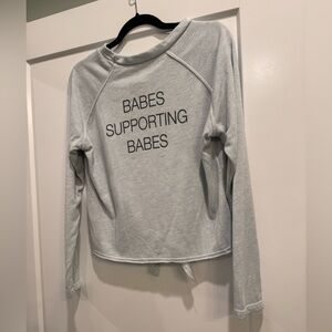 Good hYOUman front tie crew neck sweater “babes supporting babes” light blue