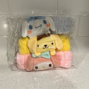 This bundle has all the accessories you need to get your day started. Bundle includes: 3 terry cloth headbands of Cinnamoroll, My Melody and Pom Pom. Kuromi spray bottle, Kuromi eye mask, Kuromi toothbrush and 2 terry cloth scrunchies of My Melody and Cinnamoroll. Best bundle deal ever and most adorable as well!