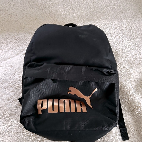 Black and gold simple Puma backpack. Near new /Solid zippers / one side pocket. Paint smudge on back in the mesh.