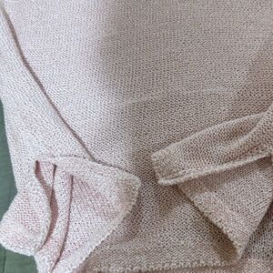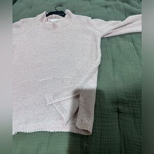 Good used condition Sz small pure Jill sweater. Pale pink with 3/4 sleeves. Split hem sides. Small Cowl neck. Smoke free home.
