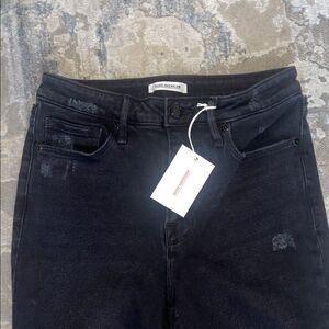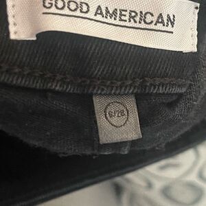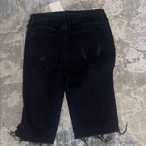 Good American Nwt Stylish black distressed denim shorts. Features a frayed hem for a trendy look.