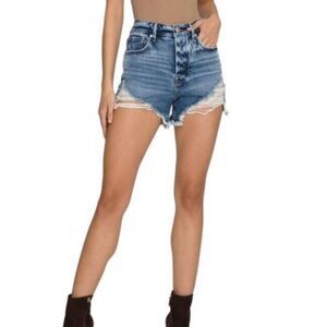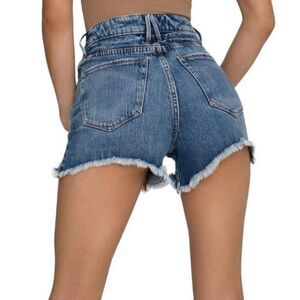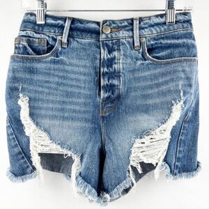 Good American Denim SHORTS BOMBSHELLdistressed Blue Wash GBS991T Size 4/27