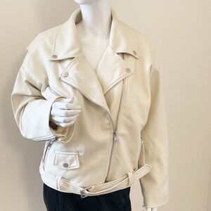 Good American Faux Leather Vegan Oversized Cream Leather Jacket in Cloud