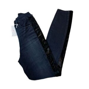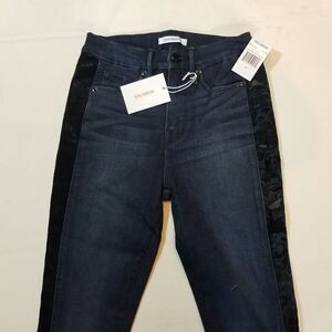 Good American Tuxedo Skinny jeans with black velvet stripes down each leg. Size 0