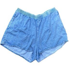 Good American Light Blue Denim Pull On Elastic Waist Shorts Size 7 2X 42” Waist