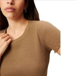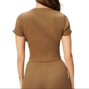 Good American Rib Knit Baby Tee Shirt Sepia Brown Size 6