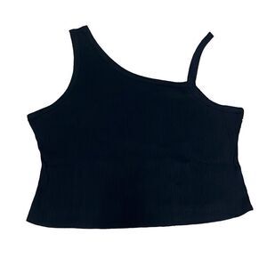 Good American Womens Plus Size 5X Cropped Tank Top Black One Shoulder Ribbed NWT