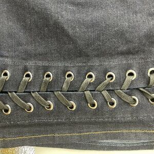 Good American Denim Mini Skirt Blue Womens Size 0 / 25 Waist Laced Detail Pencil
