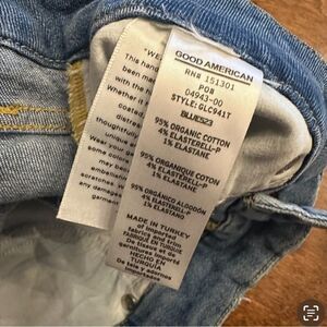 Good American distressed jeans with pox and belt loops. Waist 30”, inseam 27” and rise 10.5”.