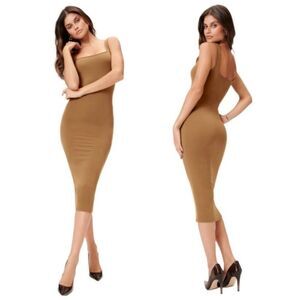Good American Dress Midi Scoop Neck Sepia Bodycon Casual Classy Lined Sleeveless
