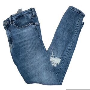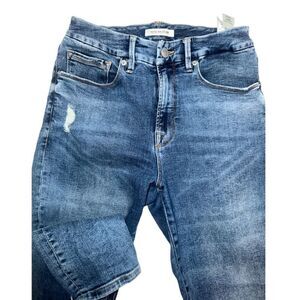 Good American Good Legs Ripped Skinny Crop Jeans in Blue 704. Distressed. Stretchy. Slightly cropped.