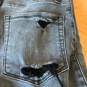 Faded black to gray with distressing on back pocket
