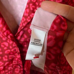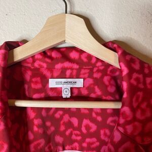 Good American leopard satin button down