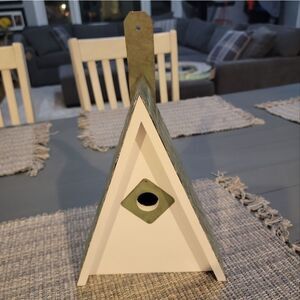 Verdigris, pure copper shingled roof and entry-guard with a long-lasting hardwood base, painted whiteAttract a variety of beautiful birds, including: nuthatches, titmice, wrens and more with a 1.25 in. entryPerch-less entry with copper guard protects from predatorsGenerous 3 hole on back with sliding copper door makes clean-up a breezeEasy to hang and enjoyAir vents strategically placed to provide fresh airDrainage holes in baseDimensions: 13.5 in. H x 8 in. W x 5 in. D (10 in. H without mount)