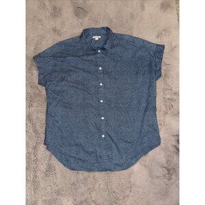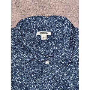 GoodThreads Ladies LARGE Blue white print Shirt Button-Up Short Sleeve
