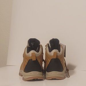 - Water-repellent leather upper with fabric lining.