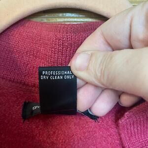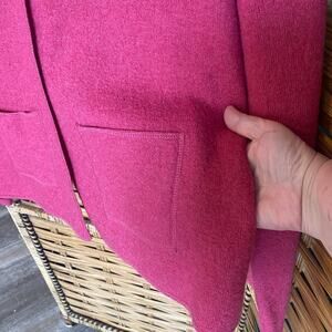 High-quality Goodclothes cardigan in a rich rose pink hue. Crafted from 100% wool, made in Australia, with a soft yet structured feel. Features a button front, two front patch pockets, and a ribbed mock neck. Size XL. Professional dry clean only. Excellent pre-owned condition — a timeless wardrobe staple perfect for layering in cooler weather.