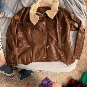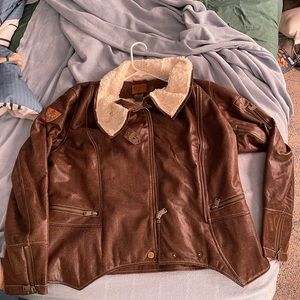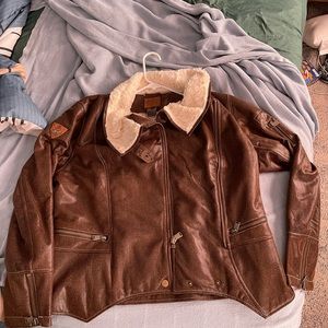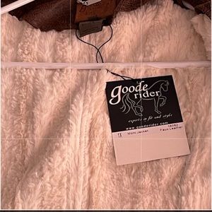 I have for sale a very nice 1X Goode Rider brand leather moto jacket, the jacket is in like new condition with no rips, tears or broken zippers. The zipper zips up on a slant and make the style of the jacket look very trendy, it is a not a super heavy jacket but it is warm the one time I have worn it. This is a very nice jacket and I think it will please anyone, it just didn’t fit me the way I would like so my loss is your gain!