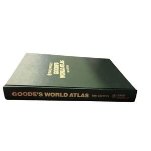 Explore the world with the Goode's World Atlas. This green coffee table book is perfect for travel enthusiasts.
